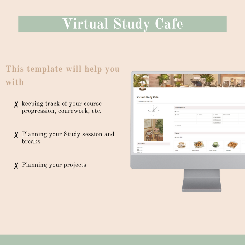 Welcome to your cozy café-inspired study space! This Notion template is designed to help students create a productive and focused atmosphere that feels like working from your favourite café. Whether you're planning study sessions, tackling assignments, or managing projects, this template has everything you need to stay organized and motivated.